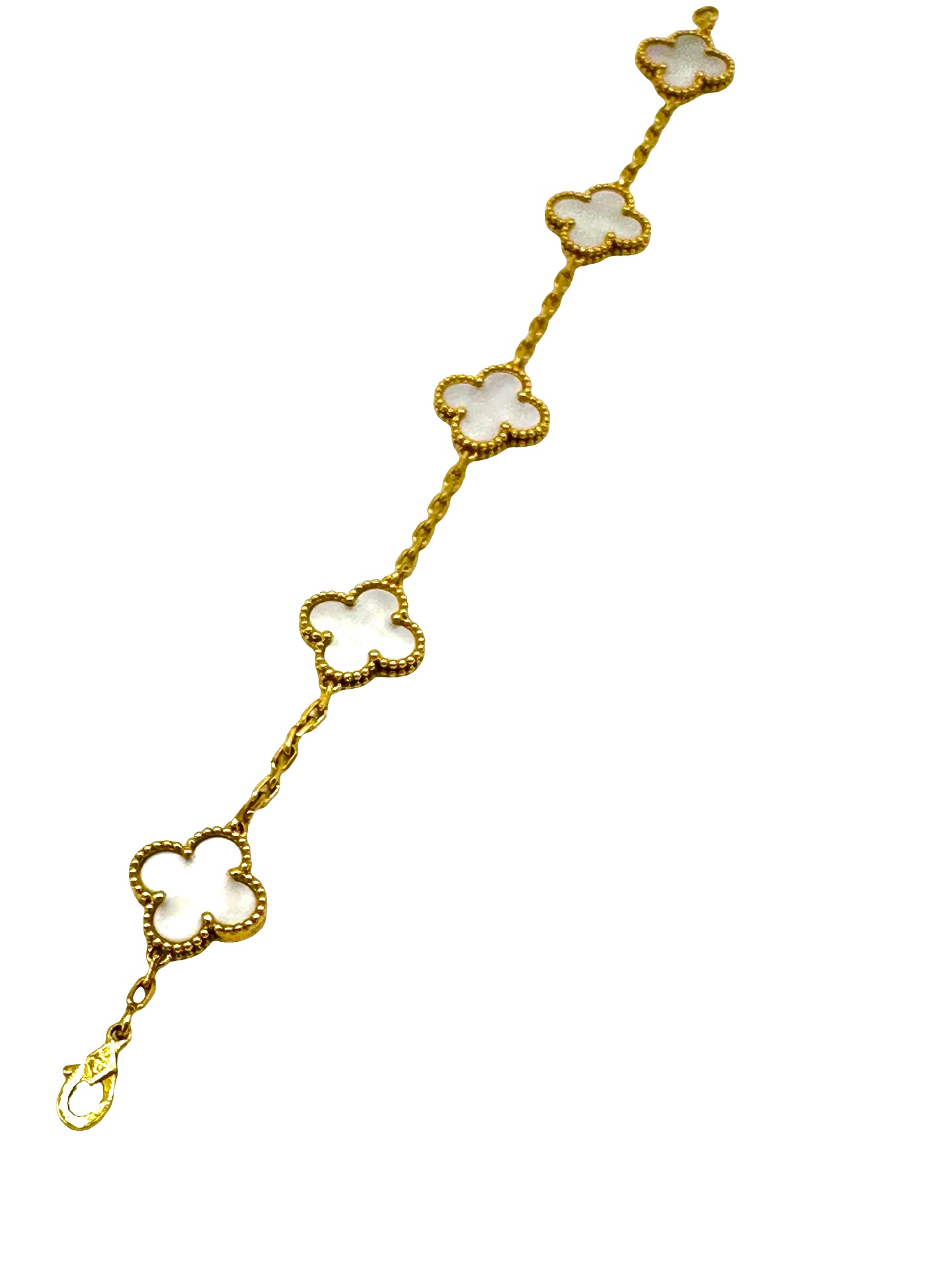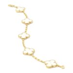 Graceful and versatile, this mother-of-pearl Alhambra bracelet embodies luck, harmony, and classic sophistication—perfect worn alone for understated elegance or layered for a modern, luxurious look.