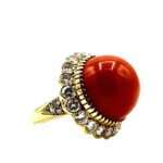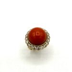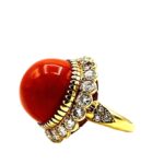 Van Cleef & Arpels Cabochon Coral and Diamond 18K Yellow Gold Ring