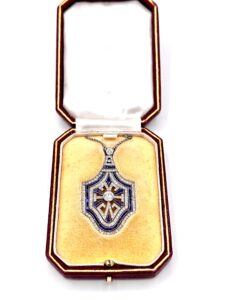 The Art Nouveau era, meaning “new art,” launched an entirely new artistic movement characterized by fluid, vibrant designs. Japanese art inspired depictions of nature, landscapes, and the female form, along with animals including dragonflies, birds, reptiles, bats, and owls that evolved into mythical hybrid creatures. Art Nouveau jewelers emphasized creative settings using amber, moonstones, pearls, opals, and synthetic gemstones. The era introduced unprecedented materials including enamel, glass, shell, copper, and horn. Enamel proved particularly valuable as it could be painted any color to authentically recreate natural hues impossible to achieve with available gemstones.